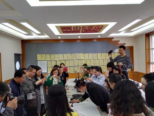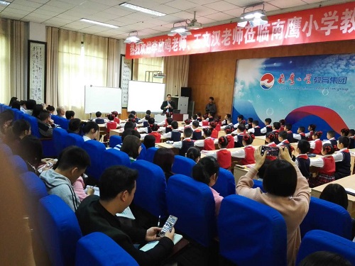2017年4月中旬,李放鸣书法进校园公益讲座活动走进素有“女皇故里”、“蜀北重镇”、“川北门户”和“巴蜀金三角”之称的广元市的南鹰小学,为该校老师进行书法教学培训讲座,传授书法教学方法,并现场亲自对该校四年级学生进行书法示范教学,让老师切身感受书法课教学。